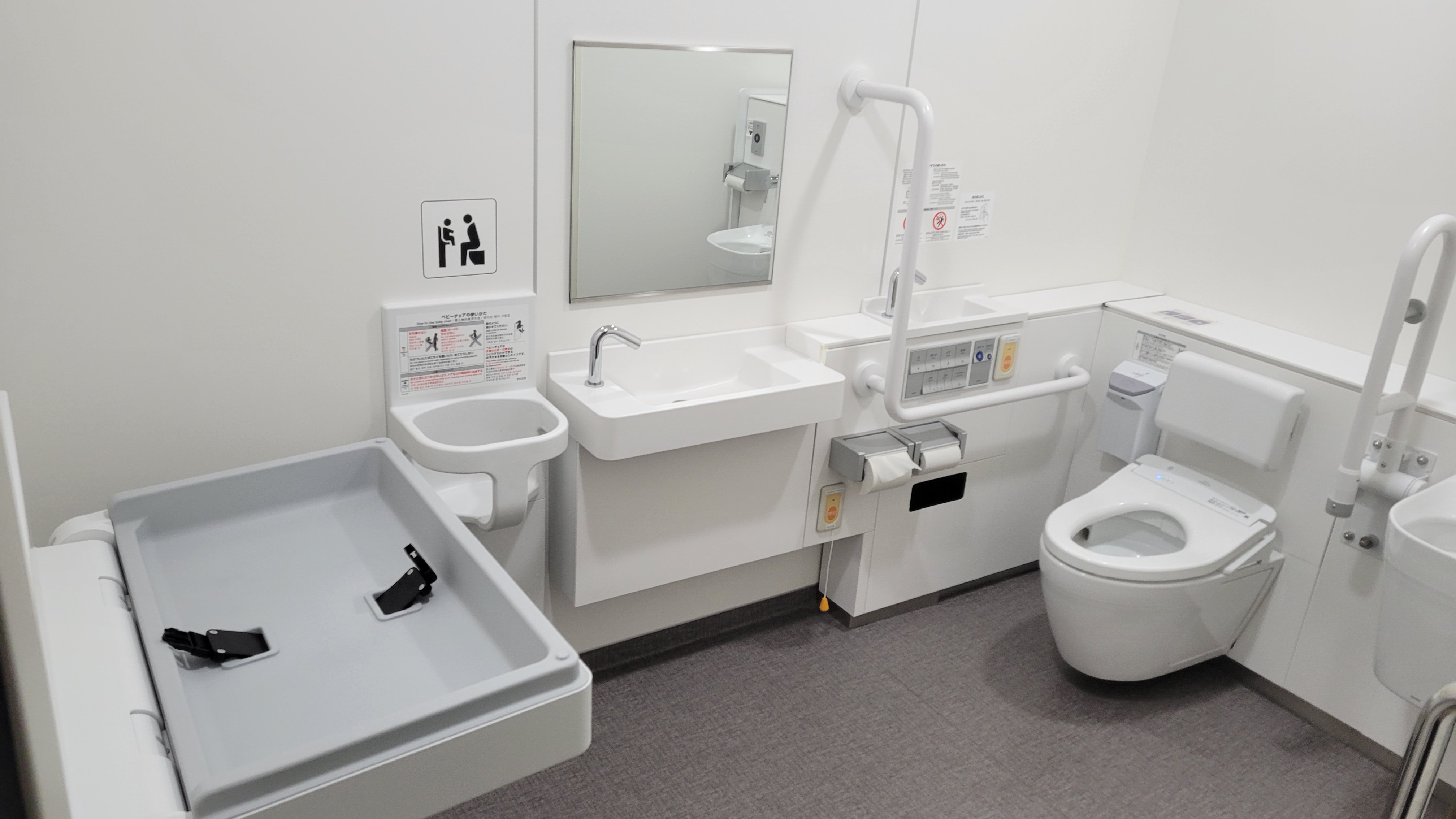 多目的トイレ(車椅子対応トイレ)(おむつ交換台、ベビーチェア、水栓)