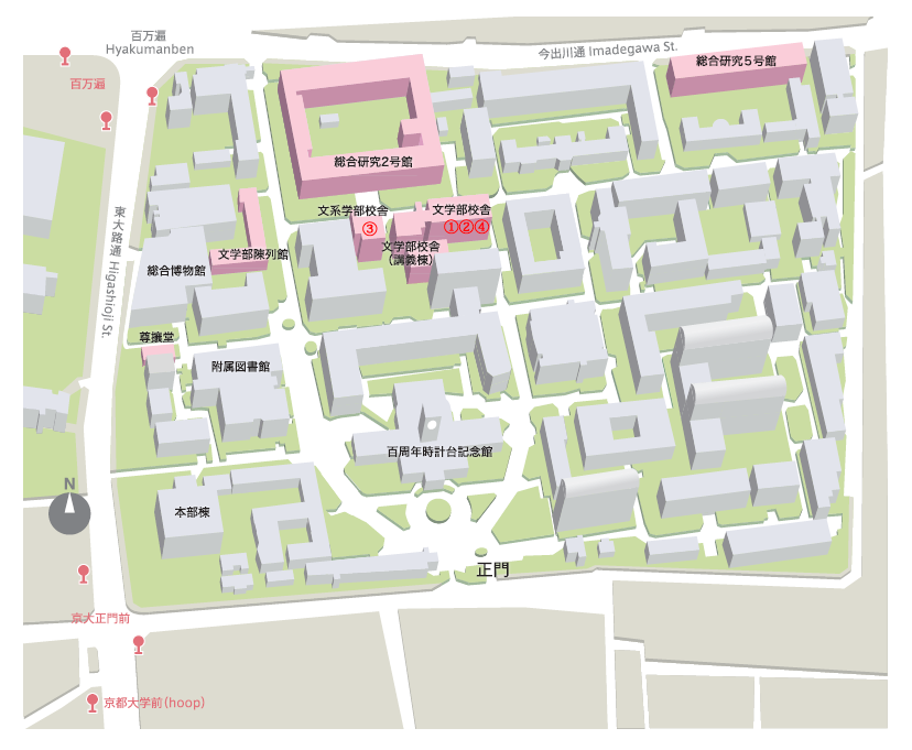 各校舎の場所は、下のキャンパスマップを参照。