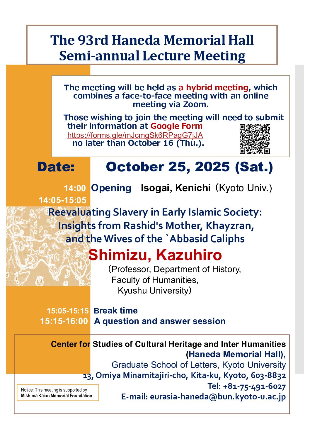 The 94th Haneda Memorial Hall Semi-annual Lecture Meeting
