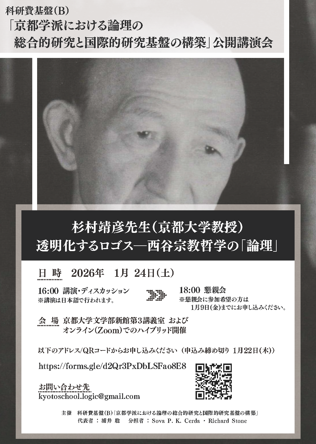 京都大学文学研究科にて、科研費基盤B「京都学派における論理の総合的研究と国際的研究基盤の構築」主催の第3回公開講演会を開催いたします。