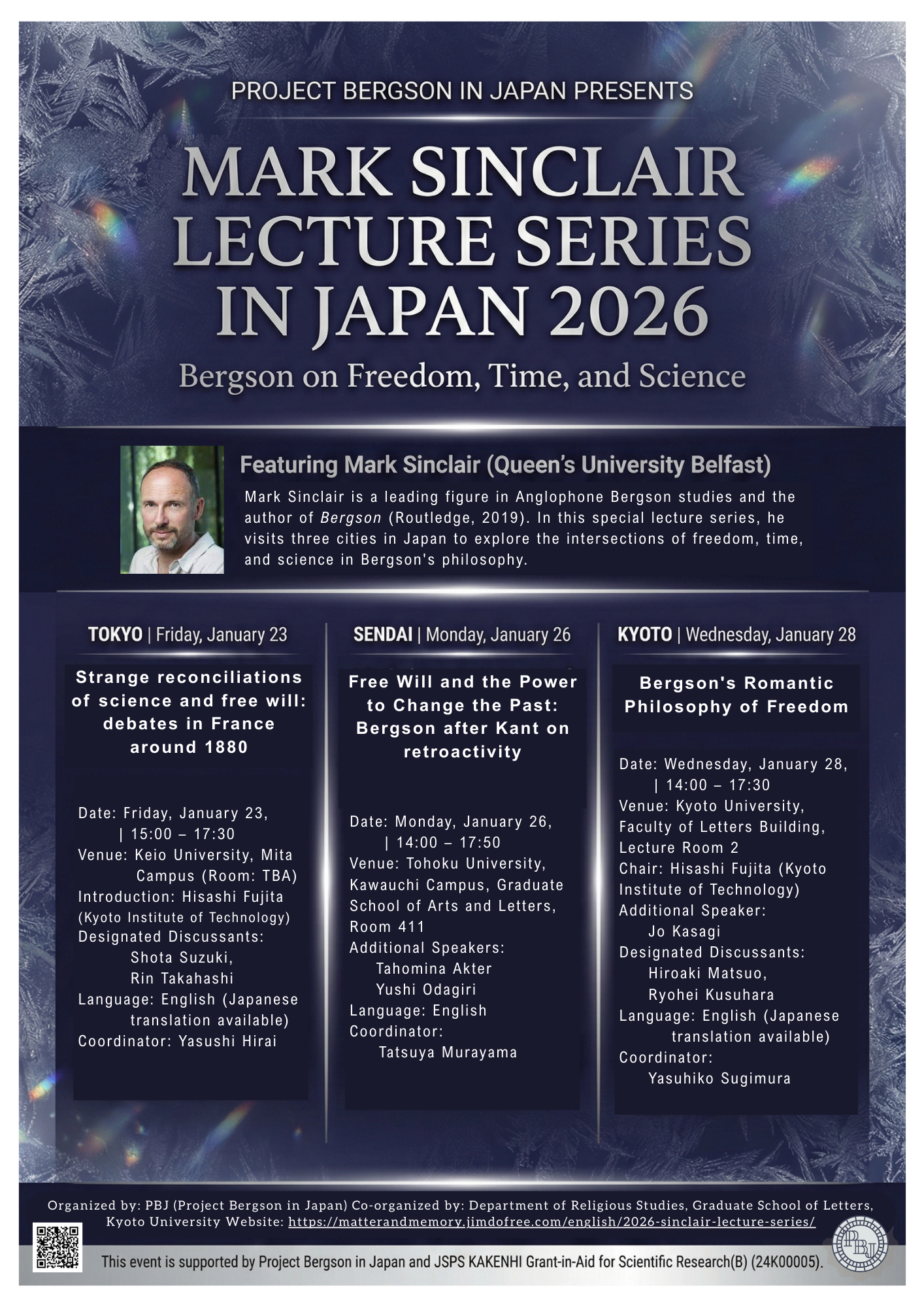 マーク・シンクレア氏 連続講演会(2026年1月:東京・仙台・京都)——ベルクソンにおける自由・時間・科学